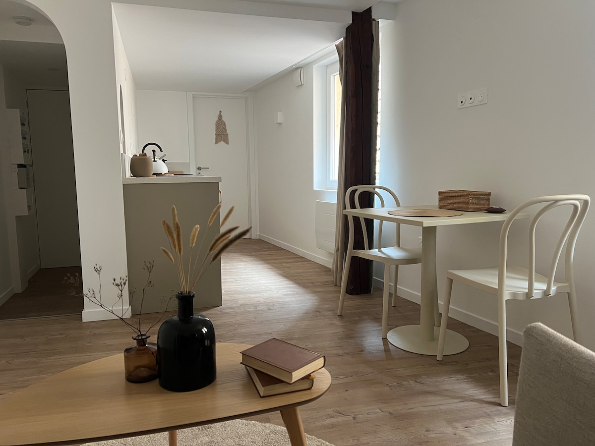 Petit meublé lumineux env 30 m2, pour 2 personnes au centre d'un village typique de vignoble de montagne. Cuisine équipée, chambre avec coin salon, TV, WIFI, lit 190 x 140, salle d'eau/douche/wc parking voitures gratuit. Garage pour vélos ou motos gratuit. Petit espace extérieur salon de jardin. Espace détente au bas de la maison. Proximité terrain de jeux (pétanque) Idéal pour randonneurs, nature, cyclo-touristes. Réservation à partir de 2 nuits minimum