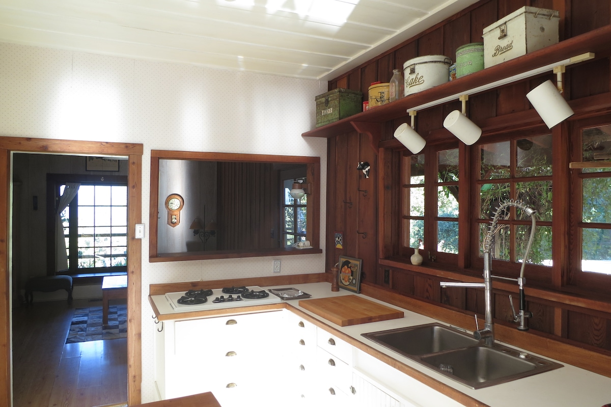 **¡Recientemente renovado/redecorado!** Esta casa fue llamada «The Ranch House» por su arquitecto Don Jacobs. Esta cabaña de los años 70 actualizada es una escapada al bosque con sensibilidad moderna. La casa está rodeada de secuoyas y tiene 2 grandes terrazas, 1 con chimenea de propano con amplios asientos, la otra con jacuzzi. El salón tiene ventanales con vistas al bosque y estufa de leña Morso. Se anima a los huéspedes a disfrutar de las rutas de senderismo, piscinas y servicios al aire libre. La casa tiene capacidad para 4 personas y cuenta con internet de fibra óptica.