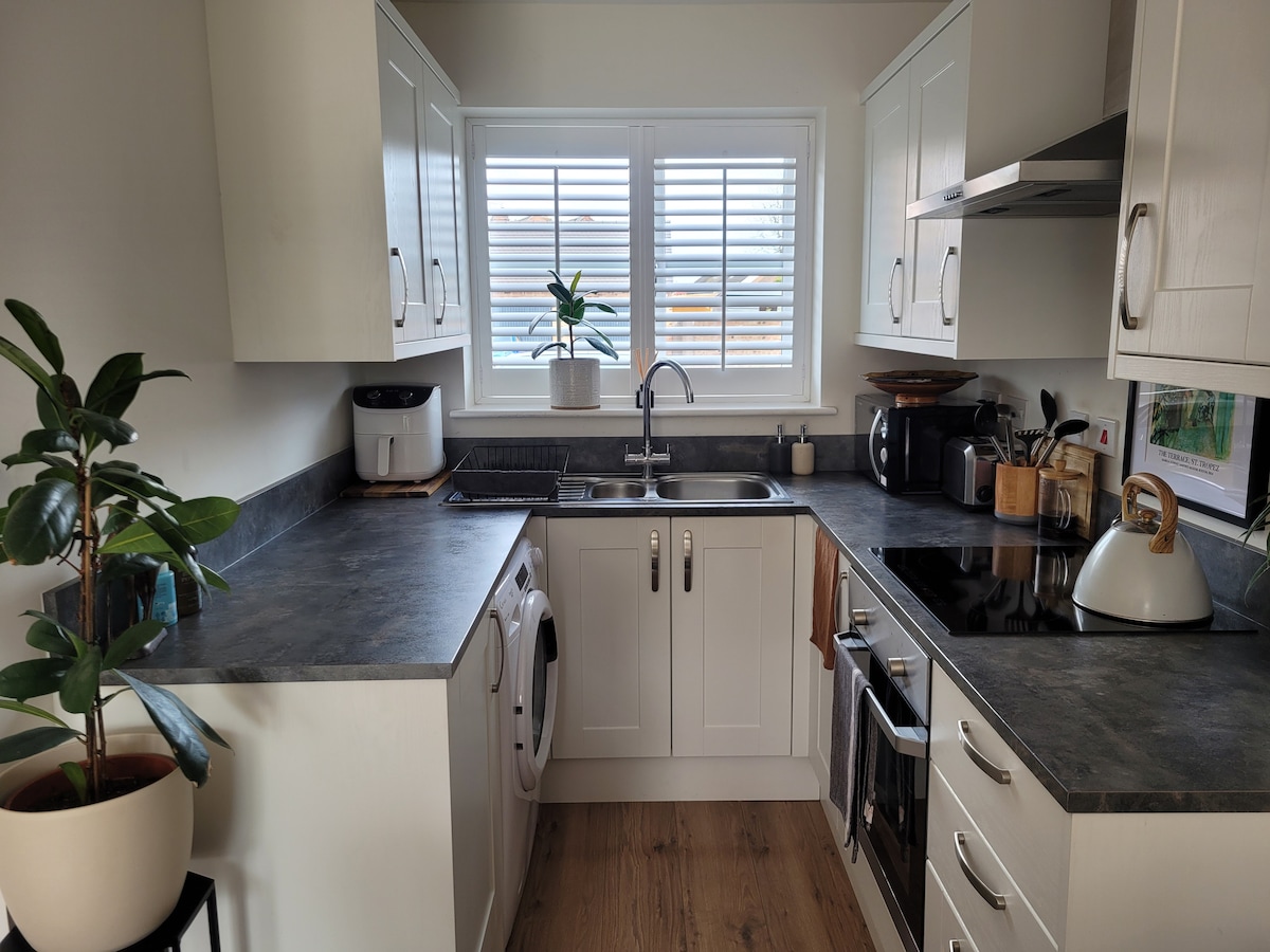 JANA @ Arendelle is a self contained ground floor guest suite with kitchenette. You have your own separate entrance and key box with parking right in front of the door. The kitchenette has air fryer, microwave, kettle, fridge (no freezer) & toaster. Sky TV & free Wi-Fi. Fold down dining table with chairs, an easy chair, waredrobe, double bed and plenty of draw space for your clothes. The name JANA comes from the first 2 letters of my granddads name and last 2 letters of my grandmothers.