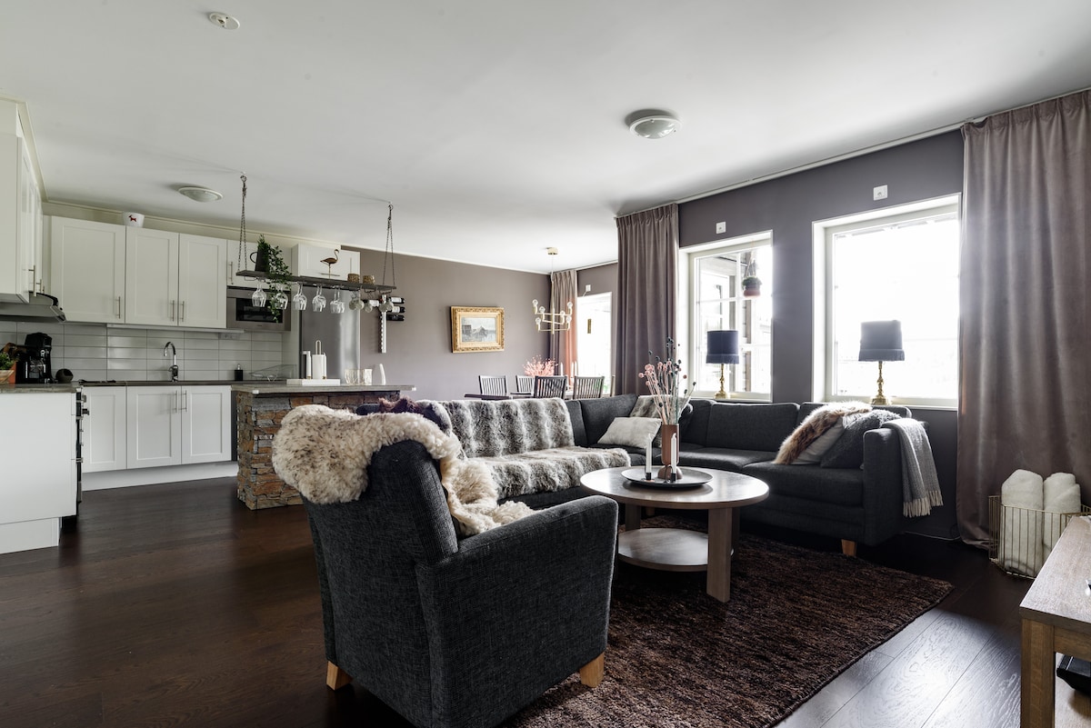 Exclusivo apartamento de dos plantas con acceso directo a las pistas de esquí en el popular Åre Sadeln. El apartamento está amueblado en un moderno estilo de cabaña de esquí con cuatro dormitorios (126 metros cuadrados). Tres dormitorios dobles y una habitación con tres camas. Cerca de esquí de fondo y ciclismo y otras instalaciones como restaurantes y tiendas y a solo un telesilla de la ciudad de Åre. Hermosa zona también durante la primavera, el verano y el otoño con senderos para caminar y andar en bicicleta justo fuera de la puerta. A unos 5 km de la ciudad de Åre en coche.