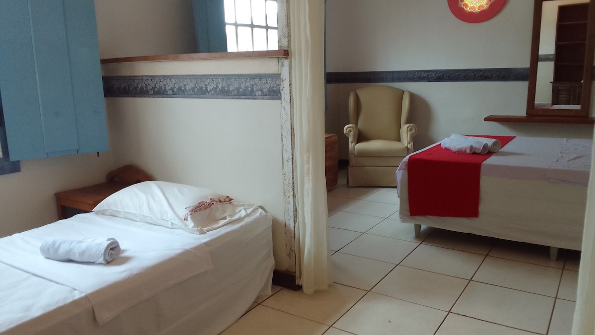 Chez Bel é uma casa charmosa e aconchegante, situada no Centro Histórico, ao lado da Igreja Santíssima Trindade. Com uma localização tranquila e fácil acesso aos principais pontos turísticos da cidade. Cercada pela natureza e com uma vista deslumbrante da Serra de São José, a casa proporciona o ambiente perfeito para relaxar e desfrutar da cultura e gastronomia da cidade. Café da manhã disponível como serviço opcional, cobrado à parte. Entre em contato conosco para conhecer as opções e valores.