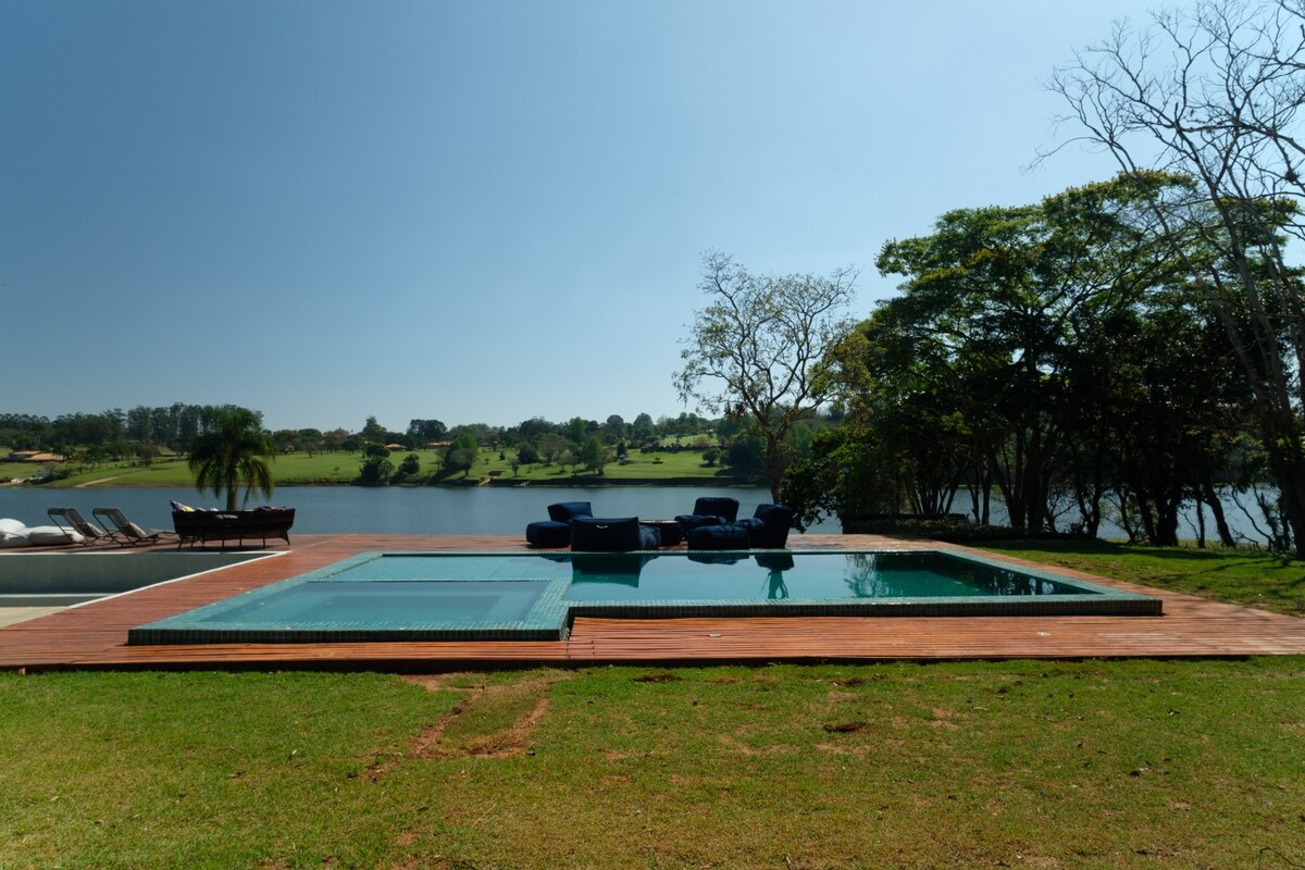 Amplia casa, al borde de la presa, en una comunidad cerrada con solo 28 lotes. Un proyecto llevado a cabo por Ambienta Arquitetura (prestigiosa por la revista Arquitetura e Construção y otros) con 3.900 m2 de terreno, 516 m2 construidos, una piscina estándar y una piscina climatizada más pequeña (calentador eléctrico), trampolín, slackline, kayak, surf de remo y barbacoa. 5 suites (todas con aire acondicionado) y otro aseo. Capacidad para alojar cómodamente a 14 personas más un bebé.