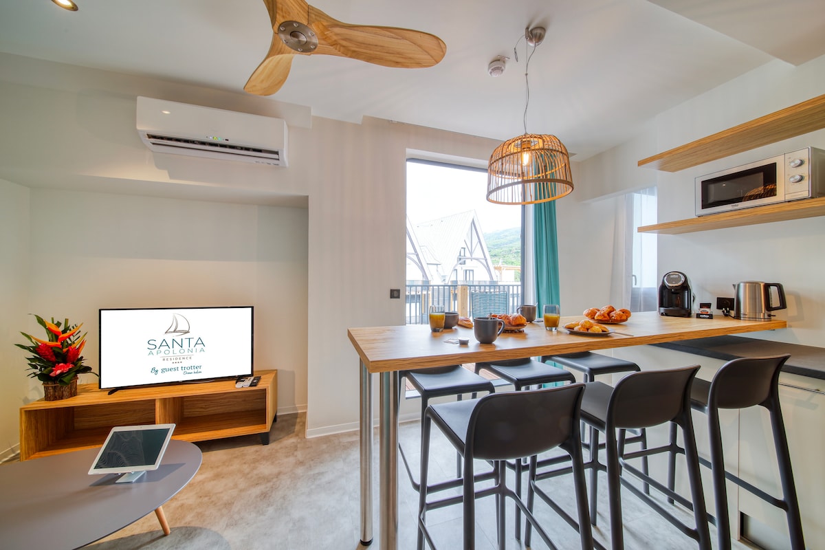 Our cozy and modern apartments are located within a residence facing the Saint-Leu lagoon, right in the heart of the town center. Residence highlights: Just steps from the safe Saint-Leu lagoon Close to all amenities Fully equipped kitchens In the heart of a vibrant living area Quick access to major roads Near popular tourist attractions All that’s left to do is book your stay and enjoy!