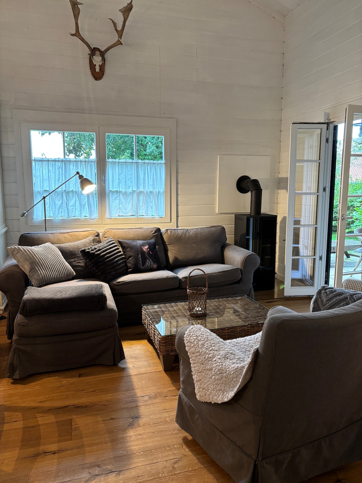 La casa de vacaciones tiene un dormitorio separado, una amplia sala de estar y un cuarto de baño con ducha y WC. Hay un aparcamiento gratuito justo delante de la puerta principal. La zona de entrada está cubierta y tiene una amplia terraza, que también se puede utilizar como aparcamiento en invierno. El sofá se puede plegar y con sus 1,40 m de ancho ofrece espacio para dos personas más.