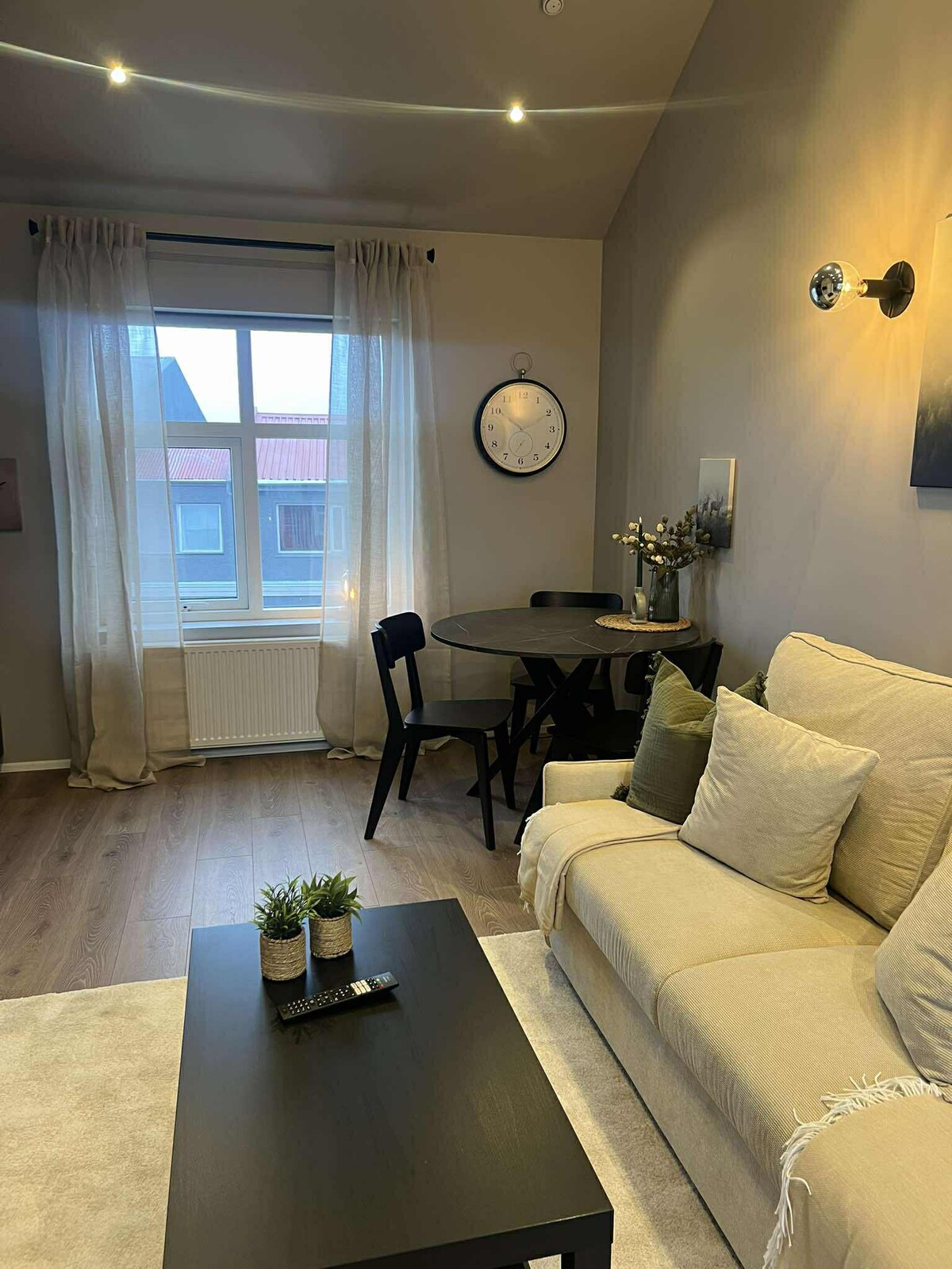 Sol Apartment 1 es un espacioso apartamento de 65 m² perfecto para un máximo de 4 huéspedes. Situado junto al océano Atlántico en Keflavík, ofrece una vida moderna con una cama tamaño queen, sofá cama, cocina totalmente equipada, TV inteligente de 55 pulgadas con cable y streaming, y wifi de alta velocidad. Los huéspedes disfrutan de impresionantes vistas al mar y de un aparcamiento privado. Cerca de restaurantes, tiendas y de las principales atracciones como la Laguna Azul, es una base ideal para explorar Islandia.