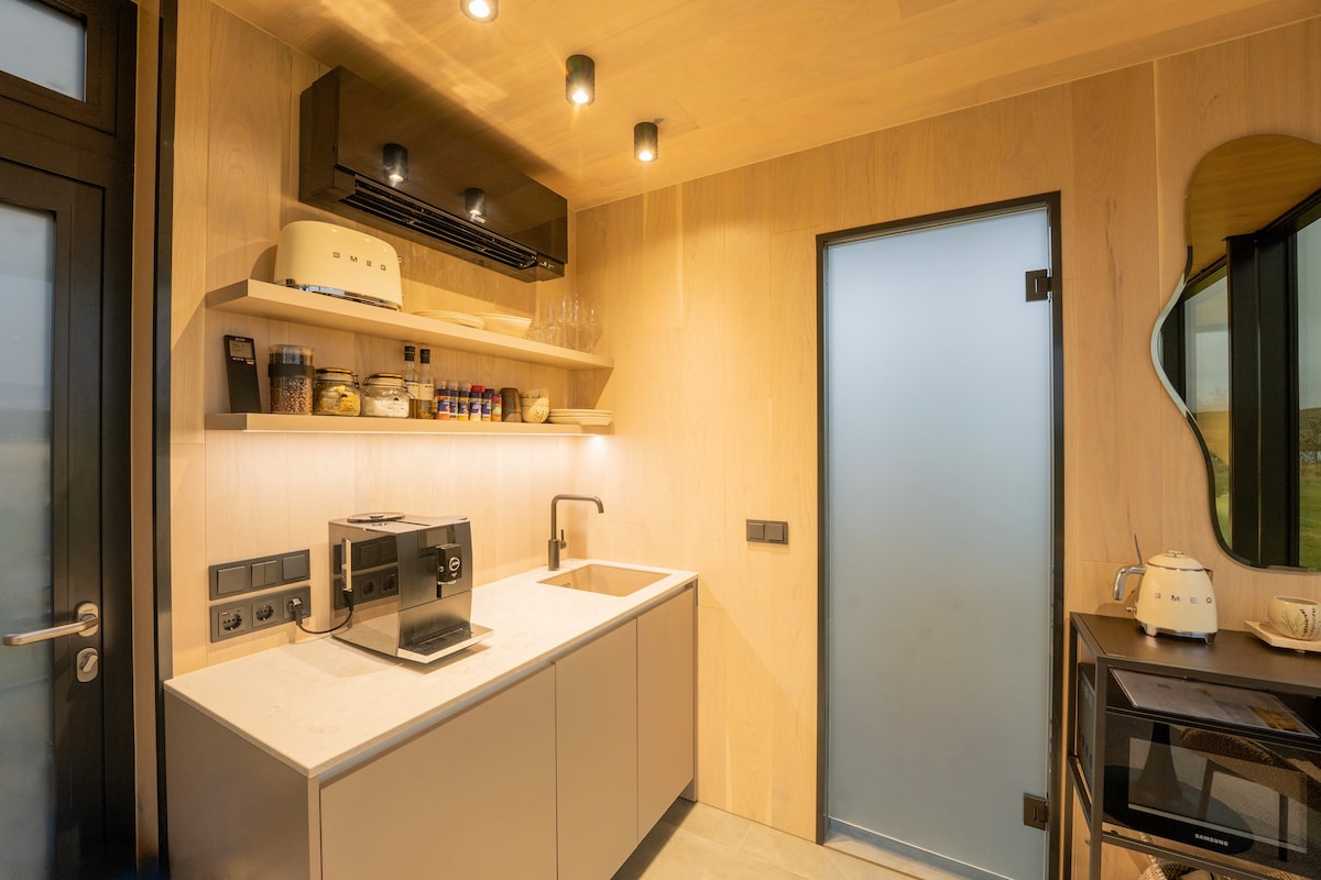 Experience unparalleled luxury and comfort at a black sand beach with beautiful views all around. There is a fully equipped kitchen and bathroom in our shared service house on the property, about 200m from the dome, as well as toilet cabins in a short walking distance from the dome.