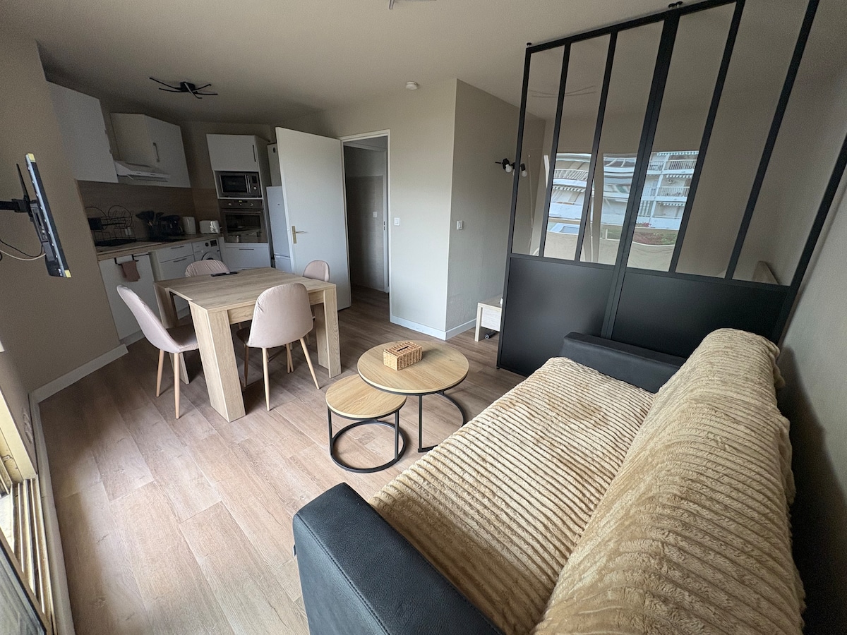 Elegante apartamento de 50 m2 totalmente renovado, en una residencia tranquila y segura. Acceso privado a un jardín de 40 m ² equipado 1 dormitorio con cama doble (160) y armario muy grande Un sofá cama (160) en la sala de estar Clima reversible 1 aparcamiento privado dentro de la residencia 2,5 km de las playas, acceso directo al carril bici al salir de la residencia Estación de tren, centro de la ciudad, tiendas, puerto y base de la naturaleza cerca se proporcionan sábanas, paños de cocina y toallas