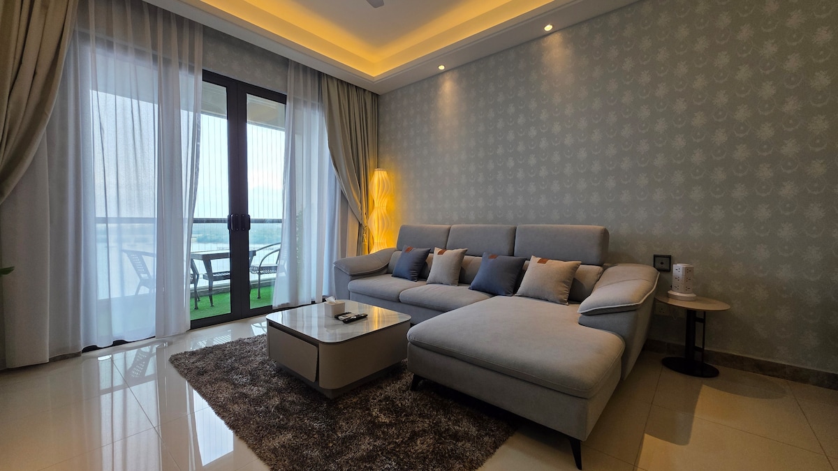 Nuestra encantadora casa ubicada en R&F Princess Cove, un lujoso apartamento de 2 dormitorios con vistas al mar de alto nivel desde el balcón. Convenientemente a solo 5 minutos a pie de JB CIQ/JB Sentral. Cerca del centro comercial R&F con Jaya Grocer, Coffee Bean, tienda de alimentos y bebidas y otros. Tenemos 3 camas tamaño queen, 1 cama individual y una cama plegable con capacidad para 4-8 personas. La suite cuenta con aire acondicionado, wifi gratuito, microondas, dispensador de agua, utensilios de cocina, lavadora, detergente para la ropa y tendedero para los huéspedes. *¡Se proporciona juego de Atari!*