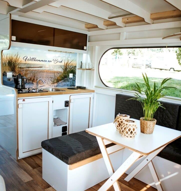 Arrive, relax and enjoy. Our modern tiny house is located close to the vineyards and the Moselle river, offering a peaceful retreat for two guests. Stylish design, high-quality furnishings and a calm atmosphere create the perfect setting for a relaxing stay. The cozy sleeping area features a comfortable box spring bed and smart TV. A fully equipped kitchen, spacious bathroom and a private terrace complete the experience.