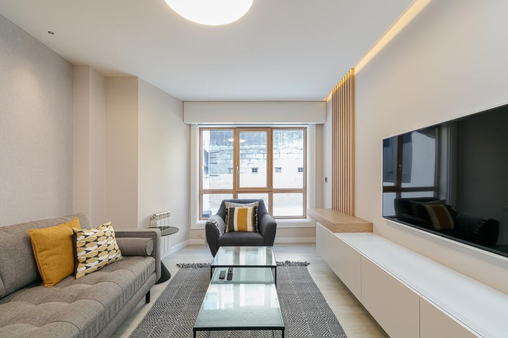 Santiago’s Apartment es un apartamento de diseño, en un edificio con portero físico 24h, en una calle con mucha luz y recién renovada. Garaje en el edificio. Y a 30 sg de la salida de la AP-9. Se puede ir a pie a c/ Príncipe, Casco viejo, el puerto… todo a un paseo. Las valoraciones son muy buenas, deseo que tú te vayas con igual sensación que las otras personas. Si te orienta para saber si es ideal para ti, los huéspedes han sido parejas de vacaciones y personas para estancias de trabajo.