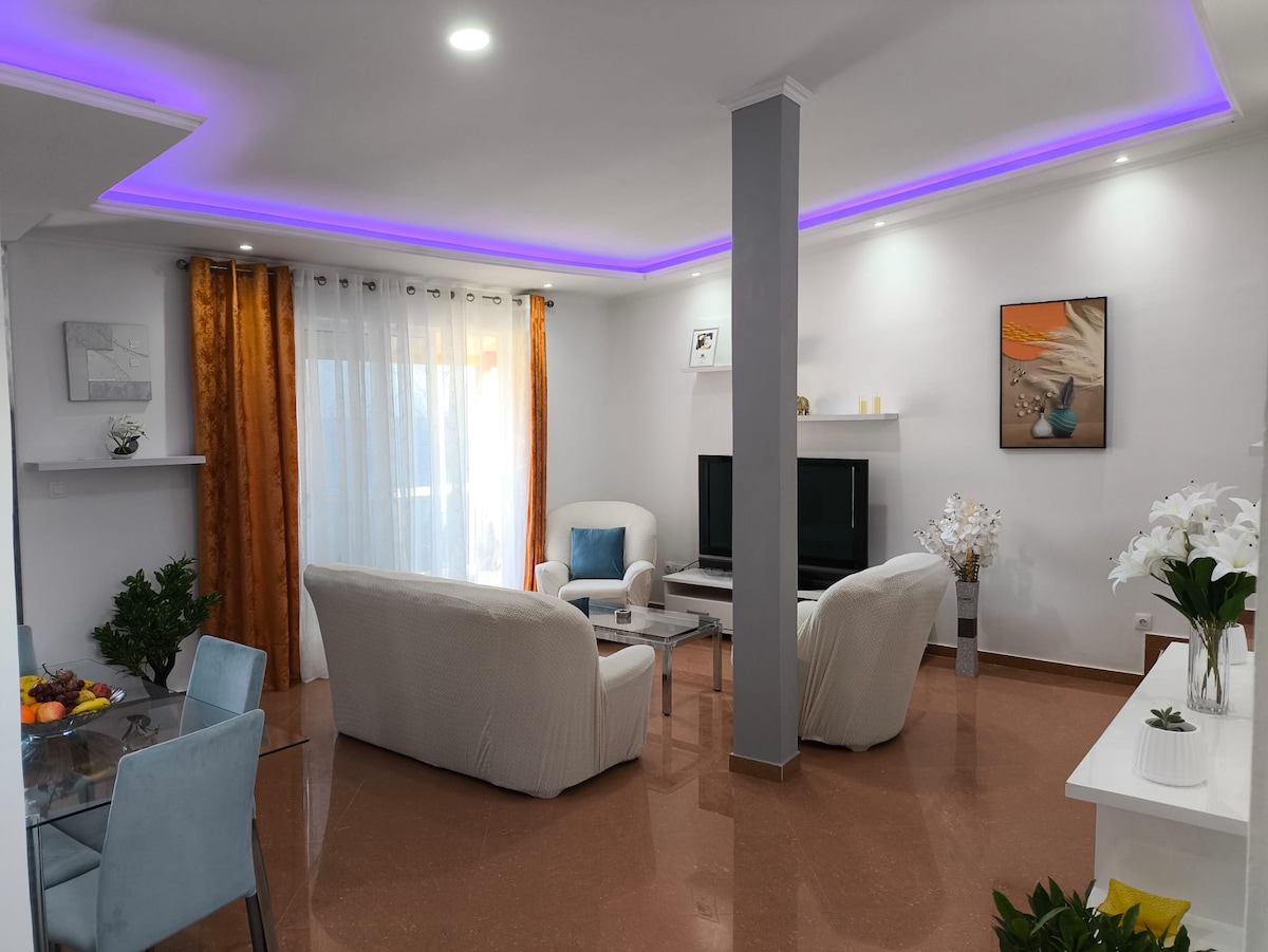 Bienvenue dans ce logement moderne et confortable, idéal pour un séjour détente ou pro. Il offre 2 chambres confortables, un salon lumineux, une cuisine équipée, un balcon, un lave-linge, Wi-Fi rapide et TV/Netflix. Situé dans un quartier agréable, proche commerces, restaurants, plage et centre de Praia, à seulement 14 min de l’aéroport.