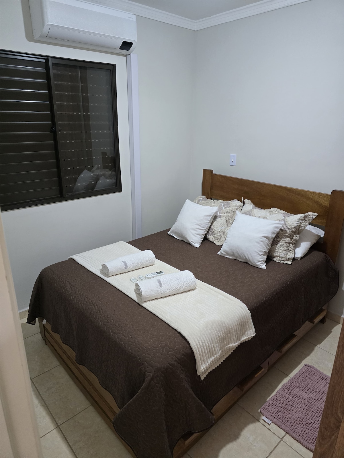 Apartamento para NÃO FUMANTE. Apto todo mobiliado e decorado, conta com TV smart de 40” e internet, três quartos com ventiladores e cama box, sendo dois deles com ar condicionado, roupa de cama (lençol de baixo, lençol de cima, fronhas e travesseiros *não temos coberta), toalha de rosto e banho, taboa e ferro de passar estão disponíveis, assim como secador de cabelo. Fácil acesso, próximo à rod. anhanguera. Posto c/ conveniência na mesma rua, supermercados e farmácias bem próximos.