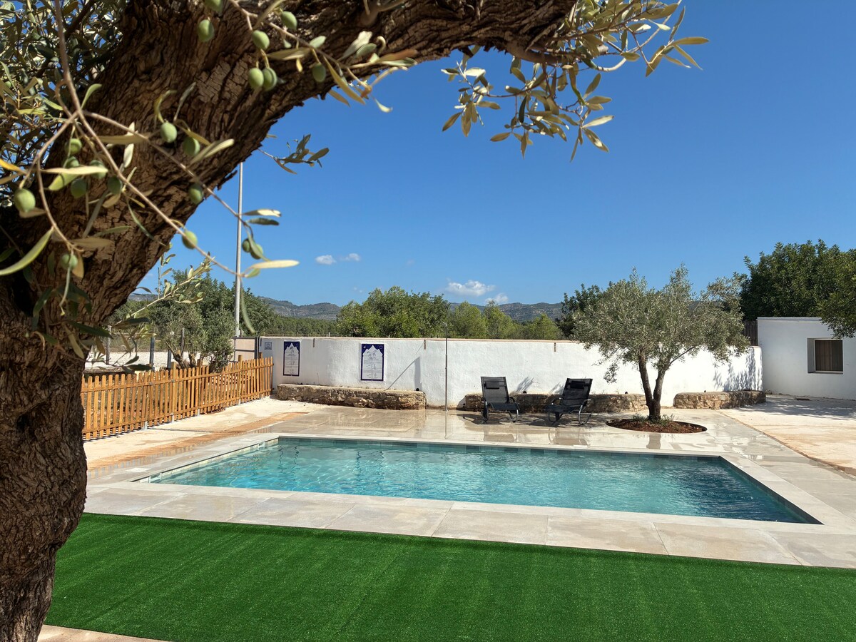 Abraza el encanto de esta masía española clásica. ★★★ Un espacio íntimo en la montaña rodeada de olivos, algarrobos, almendros, limoneros, cactus. Un entorno tranquilo en plena montaña. Masía La Paz, es una finca rústica de 25.000 metros con piscina, barbacoa, jardines y un molino de aceite histórico en restauración. Nosotros vivimos en la masía pero ofrecemos intimidad y tranquilidad, las casas están totalmente independientes y también las zonas de chill out , las terrazas y la piscina.