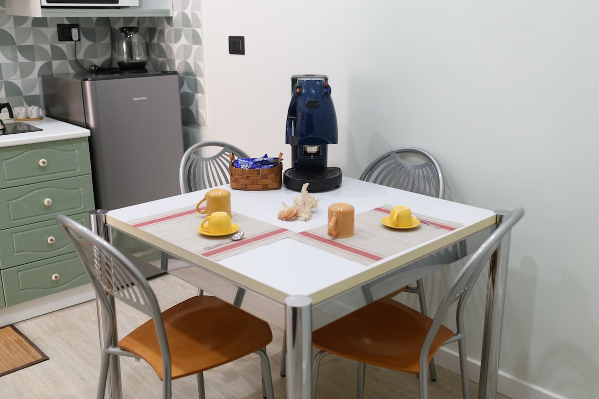 Ideal para pasar tus vacaciones con total relax. Apartamento en edificio independiente con aparcamiento privado, aire acondicionado y TV. A pocos pasos de la estación, a 500 m del centro del pueblo (7 min. a pie) donde podrás pasear por las callejuelas que conducen a las vistas panorámicas y a la catedral o llegar a las playas del Santuario dell'Isola. Habitación doble, cocina-sala de estar con sofá cama doble, zona de lavandería con lavadora. Un balcón único une todo el apartamento.