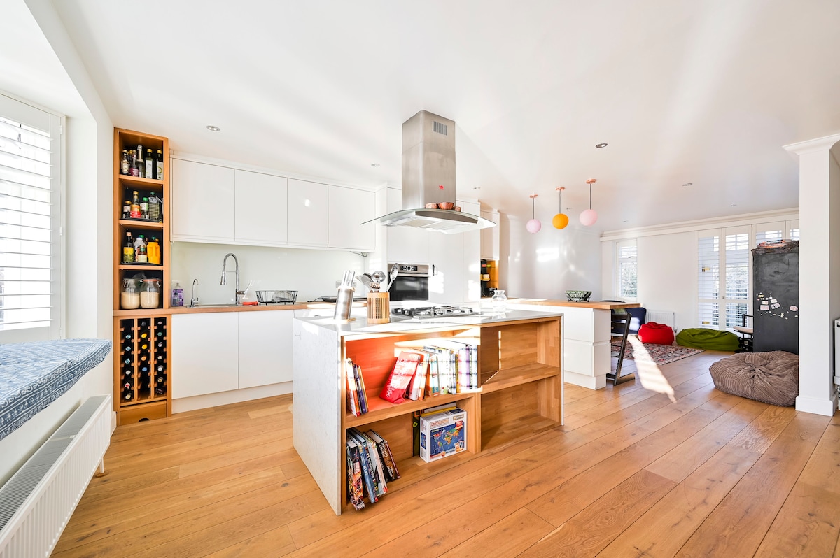 Una casa familiar acogedora. Ideal para que los adultos se relajen y para que los niños se mantengan entretenidos. Luminoso y espacioso con pisos de madera en todas partes, es la base perfecta para vacaciones familiares y explorar el centro de Londres. Bien ubicado para trenes expresos a Waterloo y el metro desde Kew o Richmond. Vuelve a la naturaleza en los vastos bosques de Richmond Park o disfruta de Kew Gardens. Según The Sunday Times, ¡Richmond es el mejor lugar para vivir en el Reino Unido!