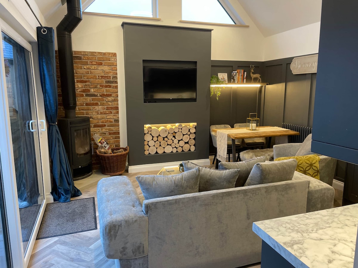 Crown Lodges are located in the Heart of the Rossendale valley- Crawshawbooth. There are three lodges in total all situated around a 140sq/m lodge with breath taking views, it is the perfect escape to the country. The site is brand new and was built by owner and host Sam through the covid-19 pandemic 2018-2021 with his keen eye for building, the site is loved and adored by many of the locals and has proved a massive hit so far. Beechwood nook located to the left hand side of our site features the most privacy of the three cabins on its own stretch of pathway. Enjoy beautiful nights in your hot tub from this natural beauty spot, our lodges have something for everyone and we believe they are all-in luxury. They feature luxury kitchens, luxury bathrooms, log burners, free standing bath upstairs next to your bedroom area and everyones favourite a 2mx2m hot tub. Tip from us-Be ready with drinks in the hot tub for when it goes dark, the site lights up like something you see when your abroad and looks incredible, you can see our site from the other side of the valley which we think looks amazing. Crown Lodges is situated on a public footpath which has miles and miles of walking, for all of you that enjoy a stroll. We recommend downloading the walking app Komoot and downloading the local pack which is priced as much as a small coffee, this is like google maps for walking enthusiasts. For local things to do, I think we are up there with the best. Our local town Rawtenstall has undergone major development in the last couple of years and is getting better and better all the time. We have Rawtenstall market which has been taken over and turned into a food heaven. Once a month it has 'foodie Friday' and is packed with local stalls selling street food and deserts. Then we have Avuccirea, fire pit, La Turka, Tiger lounge and GemNi just to name a few. All providing excellent quality of food and drinks. We have a variety of bars, pubs and cafes too, far too many to mention. We are also 40mins on the x43 bus to Manchester City centre and the bus stop is within 15mins walk from our site (big hill back up not for the faint hearted). We also have the very last temperance bar in the country Mr Fitzpatrick's established in 1899 which recently featured on the hairy bikers, this is 100% worth a visit. Ideal for couples looking for a quiet getaway but still close to exciting things to do, this brand new development is your number one hot spot for 2021. Once you come you will not want to leave, from experience our site looks so incredibly different every season. We have fantastic summers and snowy winters. One thing to note: Upstairs in the Beechwood nook cabin is restricted head height, so if your very tall you may want to pick one of the other lodges. If this doesn't bother you then its a cosy little space upstairs. The rest of the Lodge is 2.3m head height so its just the upstairs that's restricted.