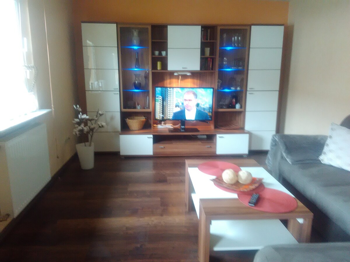 Hermoso apartamento con vistas al casco antiguo de Bad Brückenau. El apartamento consta de una cocina, un dormitorio, un baño con ducha y una sala de estar. El sofá del salón se puede sacar como una cama con un colchón, de modo que una tercera persona o niños puedan ser acomodados. Bad Brückenau está muy bien situado y ofrece excelentes oportunidades para hacer senderismo en el Rhön. Tiendas de comestibles, panaderías, carnicerías, farmacias, heladerías y varios restaurantes están a poca distancia.