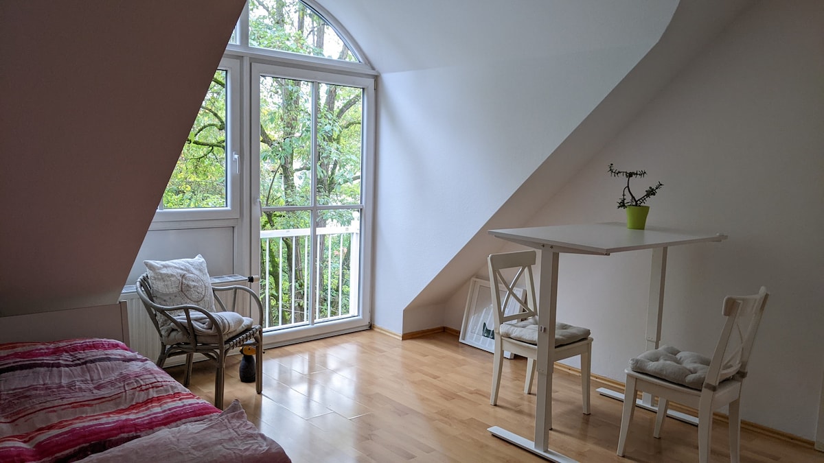 Pequeño estudio elegante. Experimenta el encanto del estudio de un artista y relájate en un alojamiento encantador y tranquilo. Los frentes de las ventanas altas, la luz, la ubicación soleada y el diseño del estudio transmiten una experiencia de vida única. Los puntos de contacto importantes están cerca: Distancia en minutos (a pie) a las tiendas Bares y restaurantes Conexión de transporte público Proximidad al lago, parques y parques infantiles instalaciones deportivas Instalaciones médicas