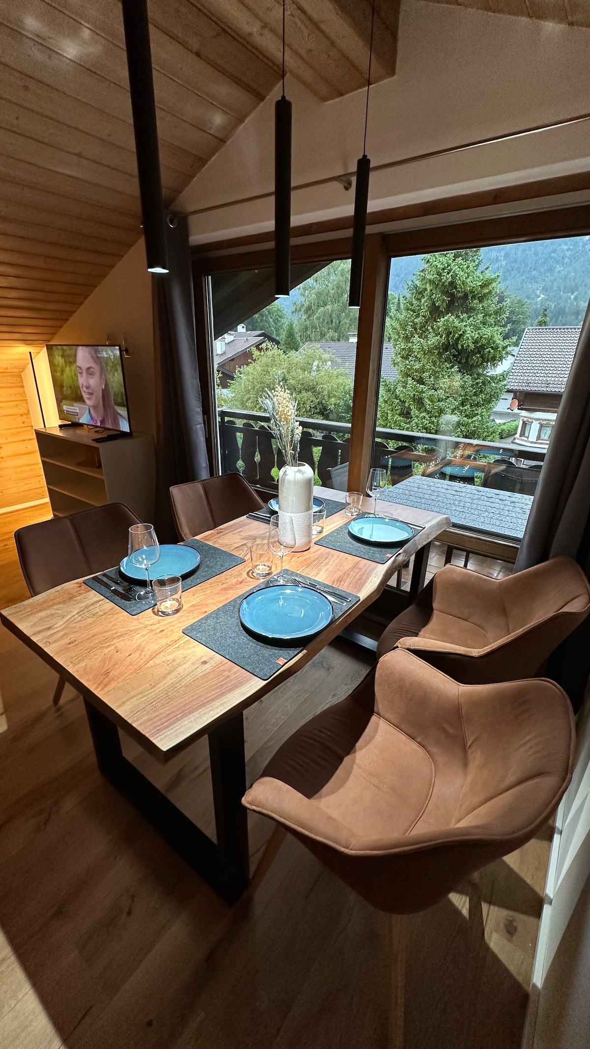 Nuestro departamento de 2 habitaciones incl. Terraza soleada espera a los huéspedes que quieran pasar sus vacaciones en Garmisch con mucho amor por los detalles y las comodidades modernas. El sofá cama (140x200 cm) en el salón es adecuado para un adulto o dos niños. Hay una cuna y una trona disponibles para los huéspedes más pequeños si es necesario. Hay una plaza de aparcamiento justo enfrente de la casa para tu vehículo. Justo al otro lado de la calle hay un alquiler de esquís en invierno y un alquiler de bicicletas eléctricas en verano.