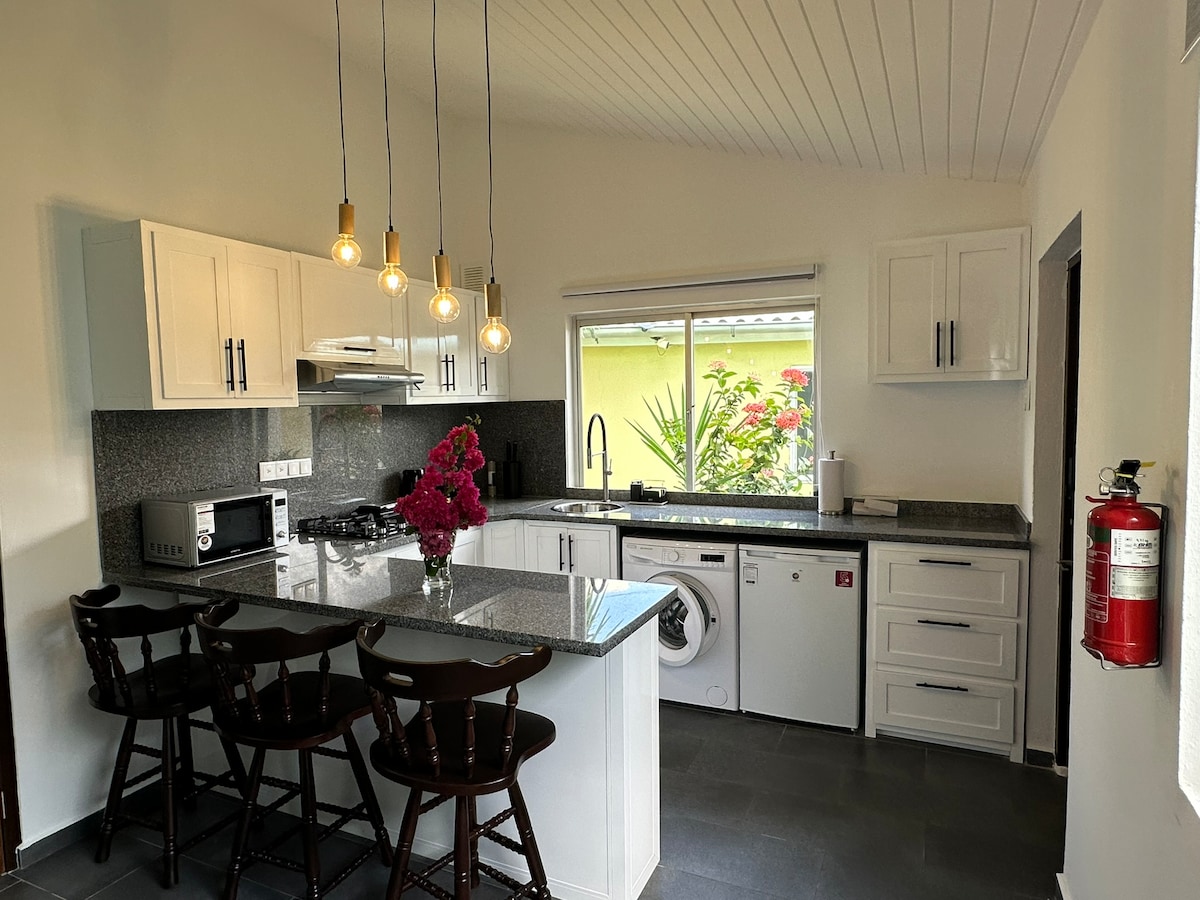 Esta villa única y céntrica (a 200 metros de Bachelors Beach) está completamente recién construida y decorada con estilo. El alquiler comienza en enero de 2026. La Garden Villa se encuentra en el jardín tropical del Pure Bonaire Boutique Hotel, junto a los apartamentos y estudios, justo al lado de la piscina. La espaciosa terraza en la azotea con cocina al aire libre y barbacoa ofrece hermosas vistas al mar, y abajo hay una hermosa terraza. Adecuado para 2 adultos (y posiblemente 2 niños a partir de 12 años).