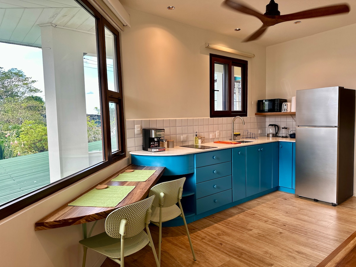 Esta romántica, lujosa y relajante villa, le ofrece la mejor experiencia sensorial. Con un increíble jacuzzi inmerso en un jardín tropical. Ubicada a solo 3 cuadras del centro de Fortuna y al mismo tiempo, alejada de las bulliciosas calles. 100% equipada con: área de cocina, internet de fibra de 200Mbps, enorme cama king, aire acondicionado, smart tv de 55 '', baño único rodeado de exuberante naturaleza. Una terraza inferior y una terraza superior con la mejor vista panorámica del volcán arenal.
