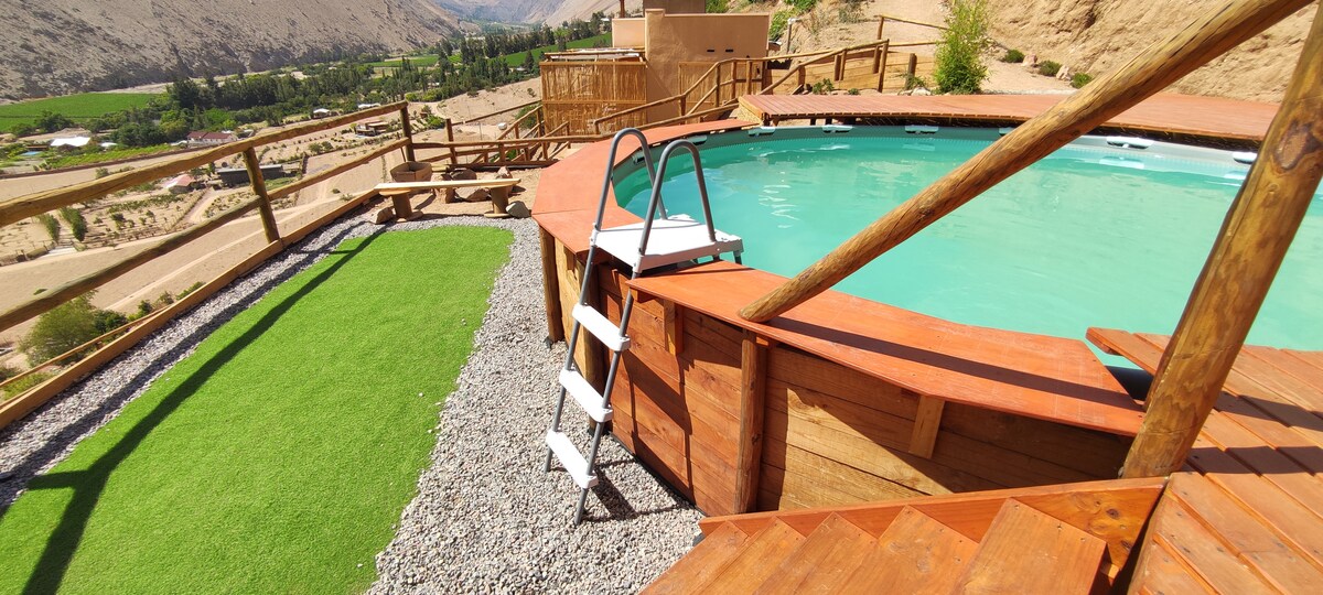 Casa rústica, posee una piscina de uso exclusivo y se ubica en una zona rural a 1,5 km de Vicuña (5 a 7 mn en auto) . Cuenta con 2 habitaciones, una de ellas con ventana inclinada para mirar el cielo nocturno. También posee una tinaja de madera, especial para disfrutar de un baño en agua caliente y contemplar las noches estrelladas del Valle del Elqui (el uso de la tinaja tiene un valor adicional de $40.000 y se debe reservar el día anterior) . Hay señal de celular.
