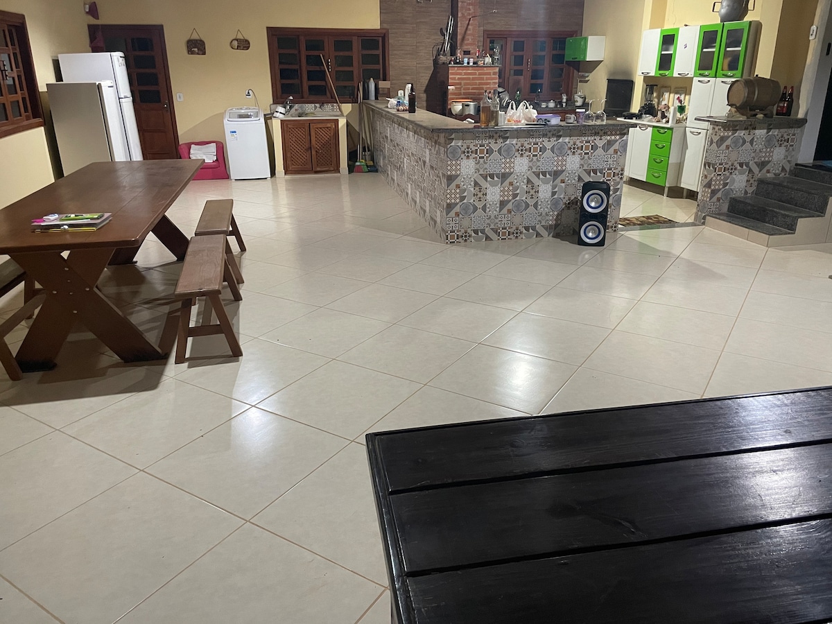 ¡Nuestro rincón familiar con su estilo rústico y acogedor, conquista el corazón de todos los que lo visitan, con su paz, tranquilidad y contacto con la naturaleza! Gran área de esparcimiento con piscina, sauna, chimenea, cancha de fútbol, espacio gourmet, cocina a leña y gas, heladera, cerveza a -4 grados. Wifi de fibra óptica de 200 MB, perfecto para la oficina en casa. Ofrecemos servicios de limpieza por separado. Si tiene alguna pregunta, póngase en contacto conmigo :)