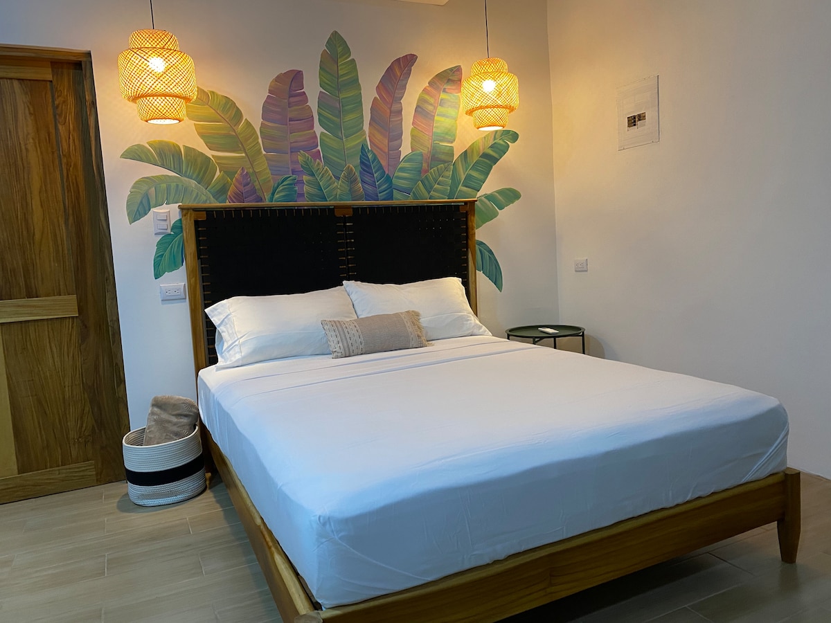 Welcome to PROVECHOZAS: CASA MANGO! This unit is located on a family-owned property home with fruit trees & wildlife. This stylish place with a cozy full size bed, and one cama/sofa (living room) , beatiful balcony, amazing art and private & central place to rest & recharge, making it the perfect option to plan your next adventure or unwind before your flight. We offer one parking indoor space Locations: SJO airport (3km) City Mall (200 meters) Sport Center (300 meters) City Center (2km)