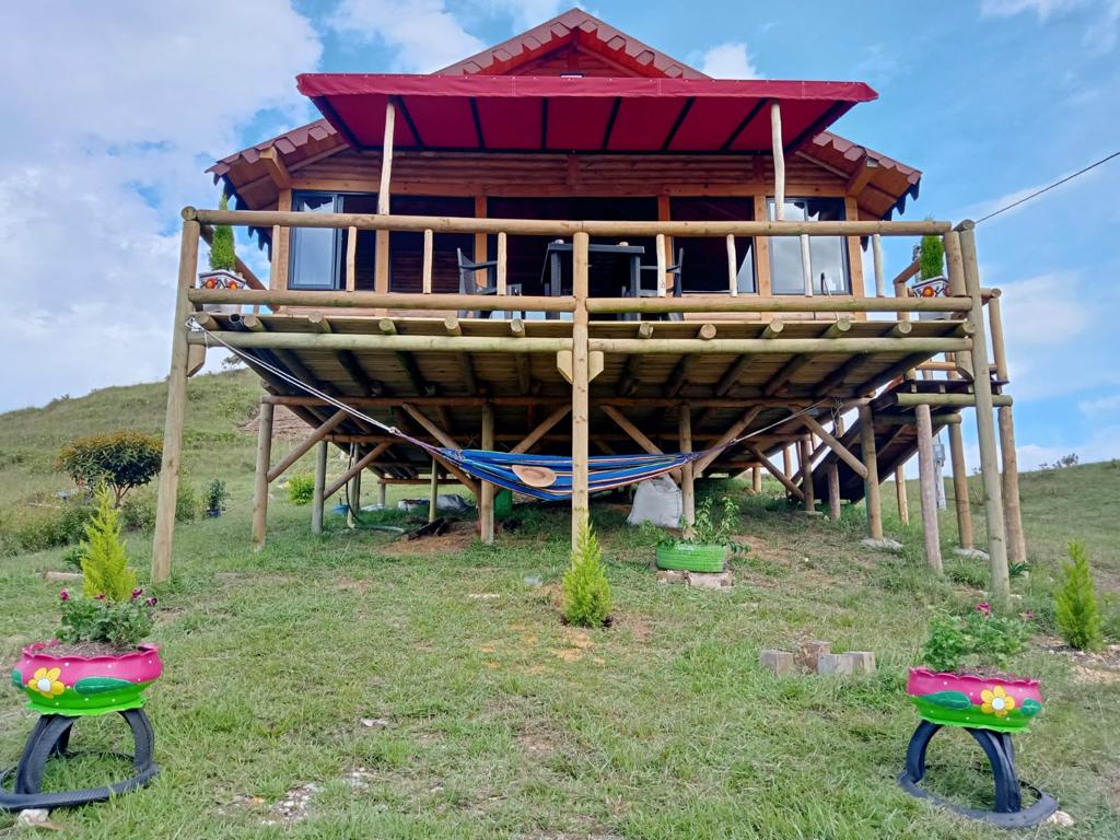 Hermosa cabaña en madera rústica, ubicada en lo alto de una colina, con hermosa vista a los atardeceres de Guadalupe Santander. Se encuentra ubicada a 15 minutos caminando de la quebrada las gachas, a 500 metros del Hotel Terrazas. Es un lugar ideal para compartir en familia, pareja y amigos.