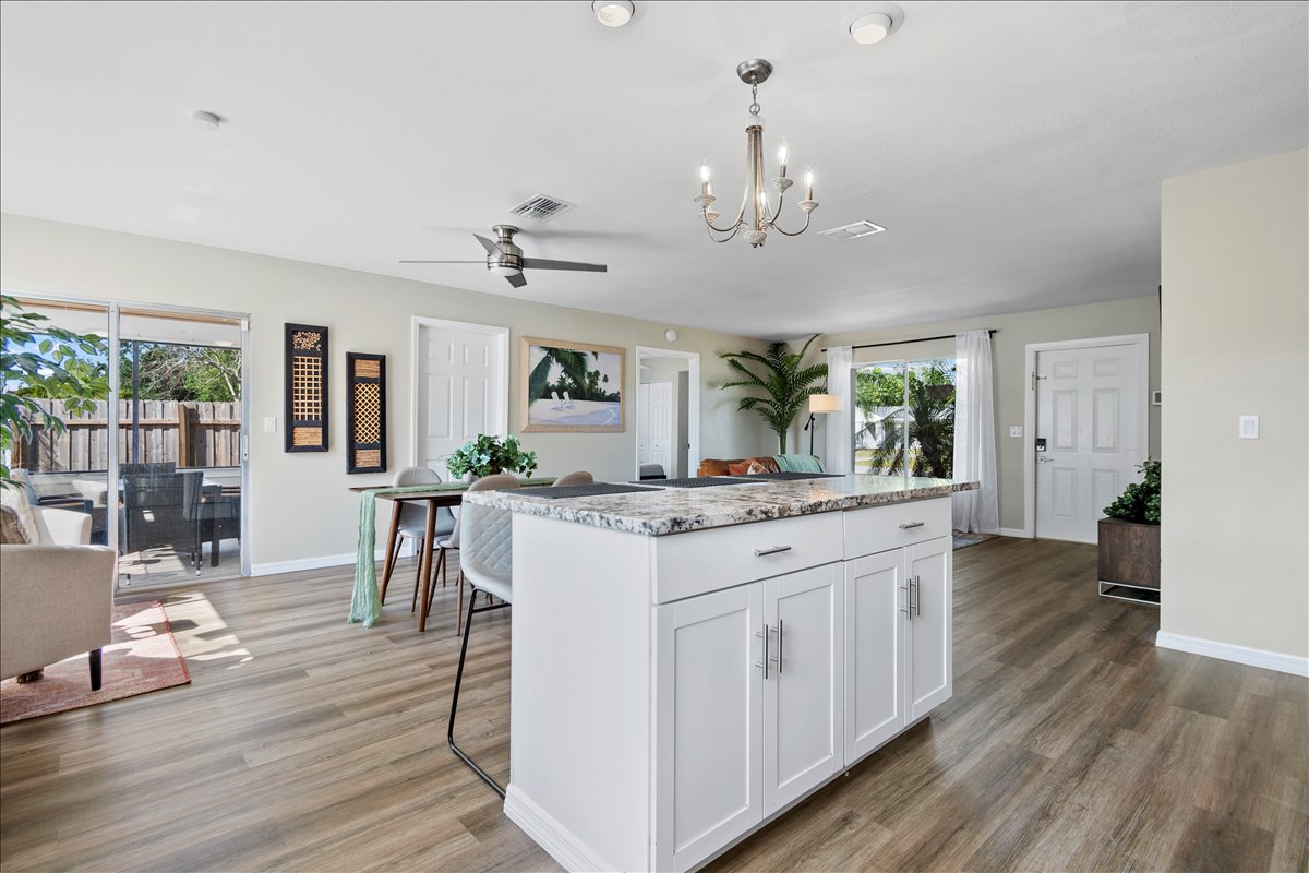 Este es tu hogar lejos de casa al instante. ¡La propiedad se encuentra a pocos minutos de la playa! Sin embargo, la nueva piscina de agua salada hace que sea fácil olvidar que la playa está tan cerca. Hay asientos al aire libre bajo el sol, y también en la zona del patio, un nuevo patio trasero vallado de madera que lo hace perfecto para disfrutar del aire libre. El paisajismo también es increíble, con una hermosa palmera Bismarck de 30 pies en el exterior. Si eres un turista habitual, este será tu nuevo lugar de vacaciones.
