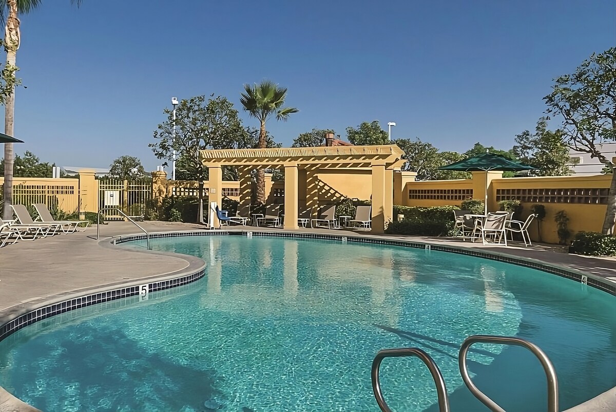¡Relájate y recarga las pilas! Unidad que admite mascotas cerca del aeropuerto