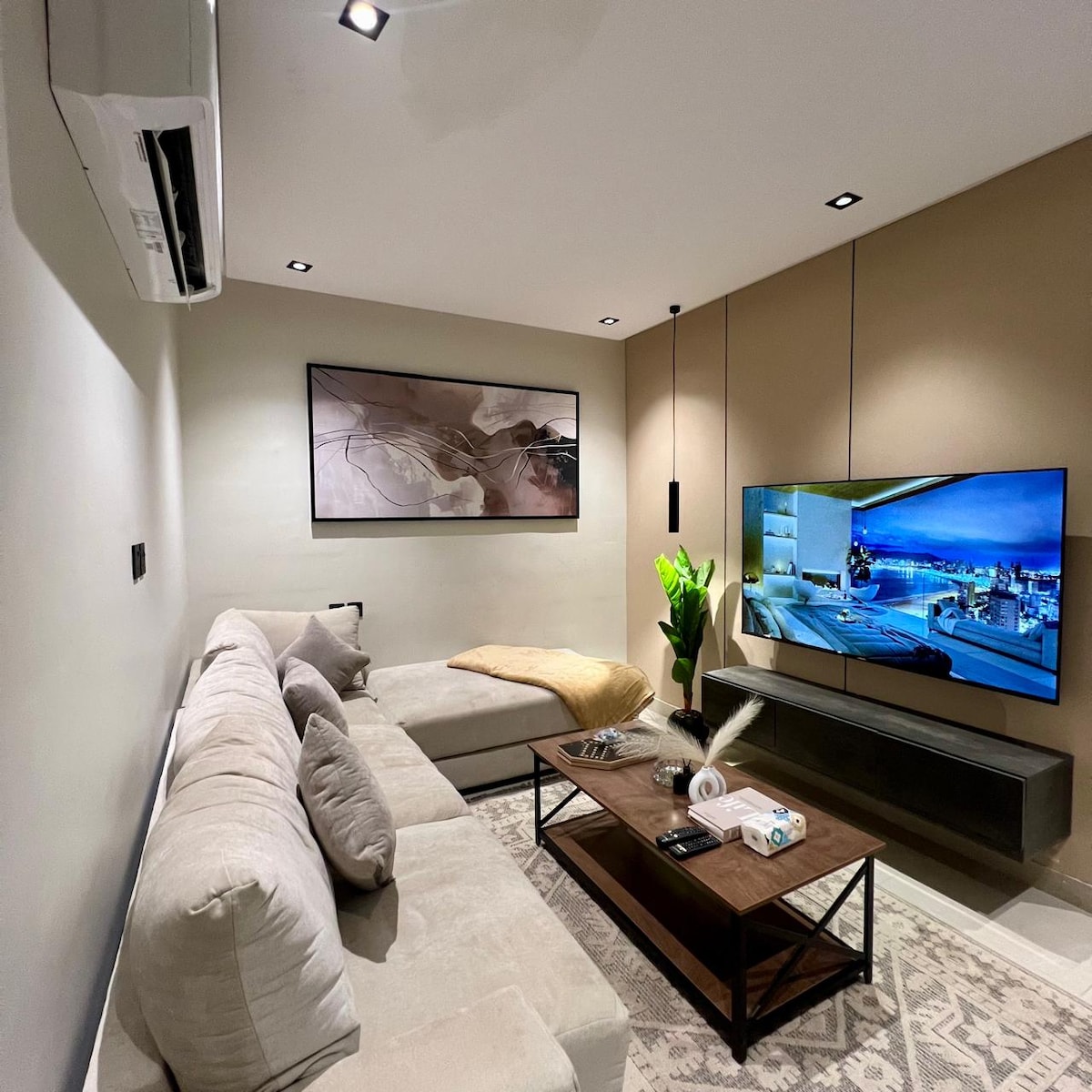 Apartamento de lujo al norte de Riad Diseñado para ser diferente y elegante con un jardín al aire libre, Tiene total privacidad y entrada automática . Ubicación estratégica 📍 Ubicado a una distancia : A 15 minutos en coche de la temporada de Riad.🌟 A 10 minutos del parque Riyadh. 🛍️ A 13 minutos del Centro Financiero King Abdullah. 🏙️ A 18 minutos del aeropuerto internacional King Khalid.🛫 Consta de una habitación americana, salón, cocina y jardín privado al aire libre.