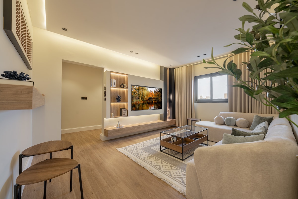Departamento de lujo de 2 habitaciones con jacuzzi privado en la azotea en Al Malqa, al norte de Riad. Disfrute de una estancia con estilo que incluye un televisor inteligente QLED de 75 pulgadas con Netflix, Disney+, Shahid y OSN. La azotea ofrece una hermosa vista, asientos al aire libre y un sistema de niebla refrescante para crear un ambiente agradable. Wifi de fibra de alta velocidad, cafetera, horno eléctrico y registro de entrada autónomo. Ideal para parejas y para noches relajantes en la azotea.
