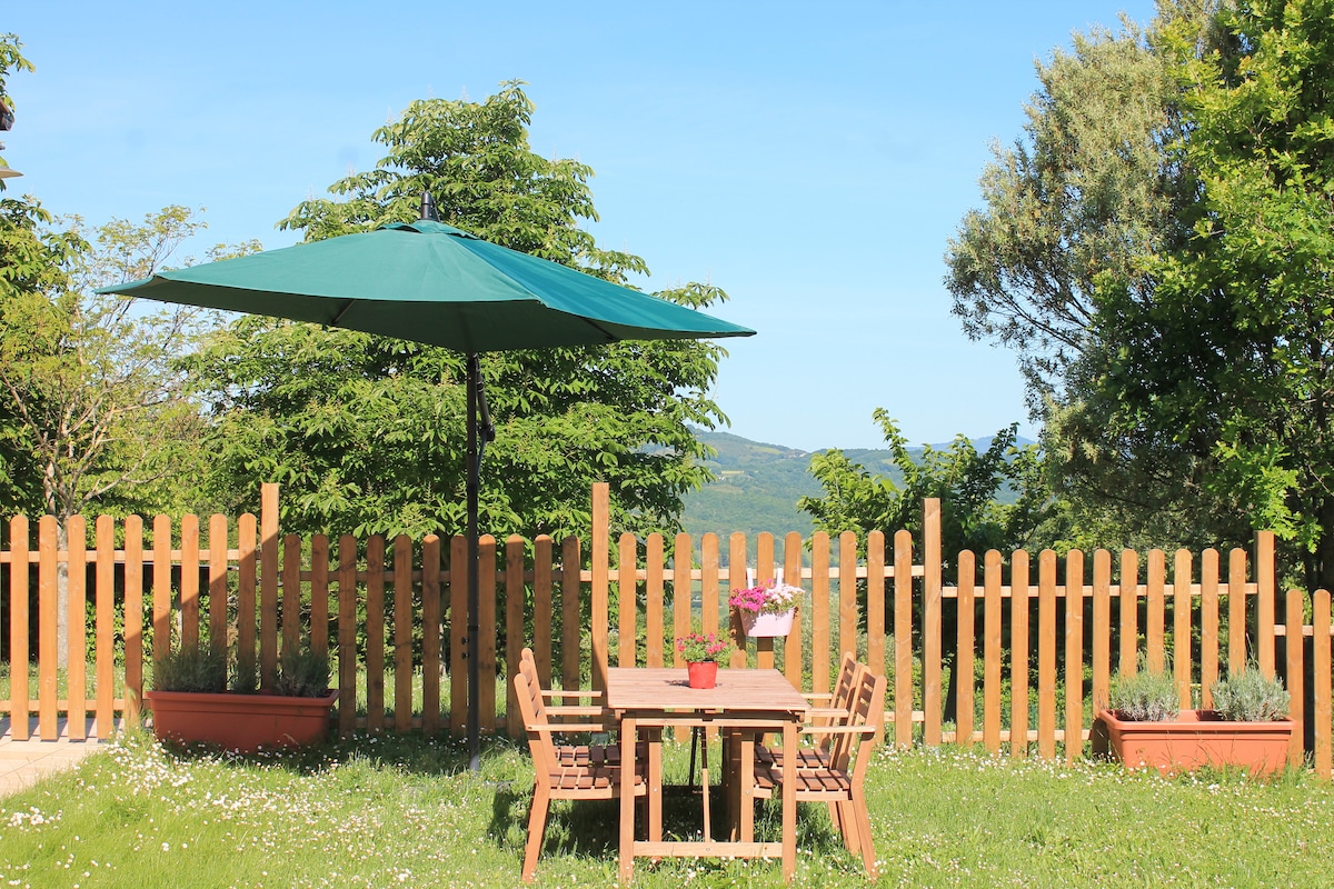 Cabaña rural cerca de Perugia, terraza-castillo a metros