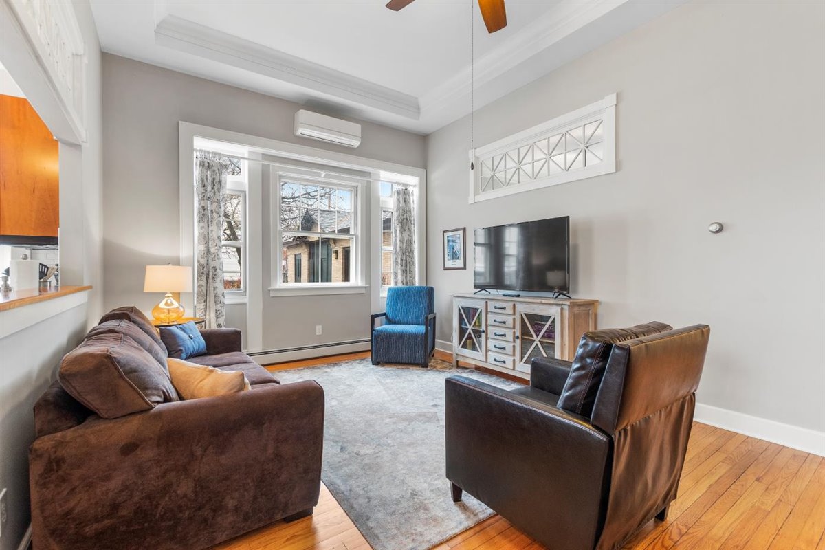 Bienvenido a The Farmhouse en 10 Park Place, un apartamento único de 1 dormitorio en el primer piso. Este apartamento ha recibido el tratamiento completo: ¡todo nuevo! Siéntate y relájate frente a la chimenea mientras disfrutas de la televisión inteligente de 55 pulgadas o de un buen libro. Una cocina completa permite a los huéspedes preparar una comida completa y la mesa de comedor con 4 asientos permite a los huéspedes sentarse a disfrutarla. El sofá diván se convierte en una cama completa para una segunda zona de dormitorio. Todos los servicios del centro de la ciudad están a solo un paseo.