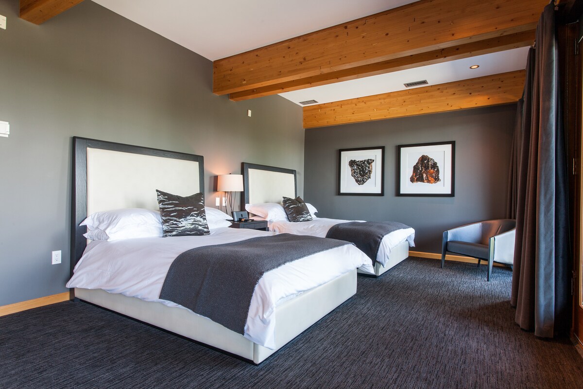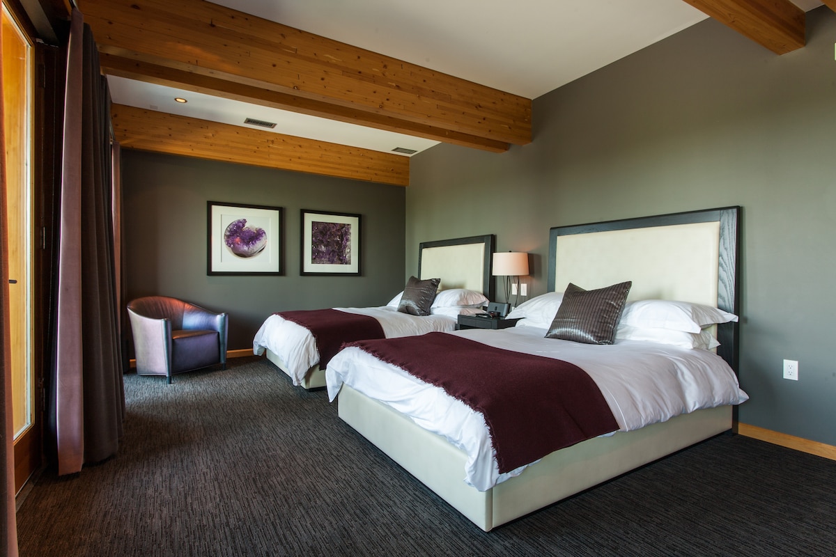 Perfect for families or small groups, this two-queen room provides space and comfort for a restful night. The hotel’s location near Fish Creek Park makes it ideal for outdoor enthusiasts. Free parking and nearby public transit make city exploration hassle-free.