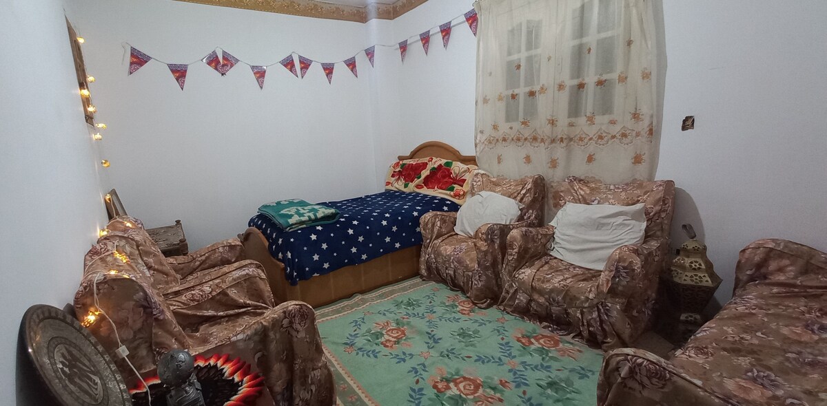 Departamento moderno de 2 habitaciones en Toub Ramli (Ciudad Nasr), El Cairo. Amplio y luminoso, con 2 dormitorios, una sala de estar grande con balcón, cocina equipada, baño limpio, Wi-Fi rápido y ascensor, en un edificio seguro. Ubicado cerca de la mezquita Al-Walidayn, tiendas y restaurantes. Zona tranquila, ideal para parejas, familias o estancias cortas. Excelente relación calidad-precio y fácil reservación.