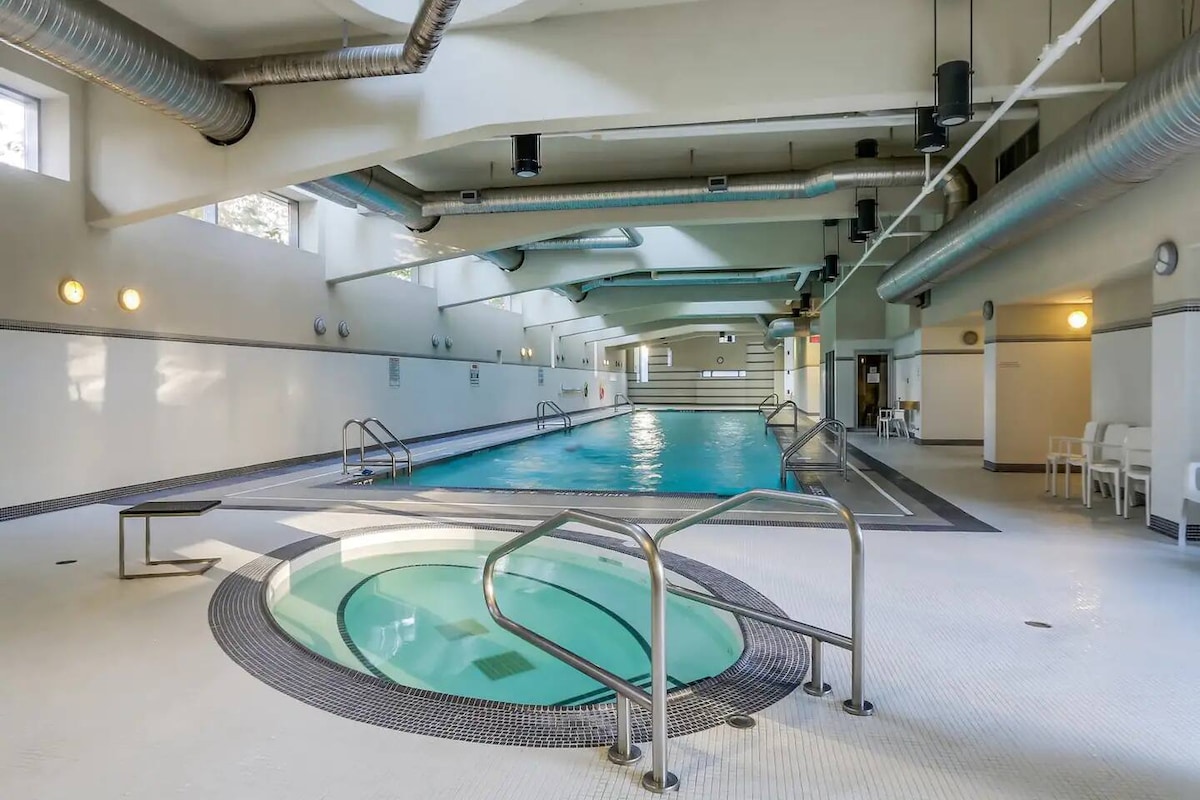 ¡Te damos la bienvenida a nuestro Airbnb en el centro de Vancouver! Nuestra acogedora suite de un dormitorio con estudio está justo al lado del SkyTrain, BC Place, Rogers Arena y las tiendas de Parq Casino... Además, disfruta de acceso a nuestra piscina cubierta, gimnasio, jacuzzi y sauna para la máxima relajación después de un día explorando la ciudad. Plaza de aparcamiento gratuita con cargador eléctrico para coches eléctricos. ¡Estamos encantados de hospedarte para que disfrutes de una estancia cómoda y rejuvenecedora en el corazón de la acción!
