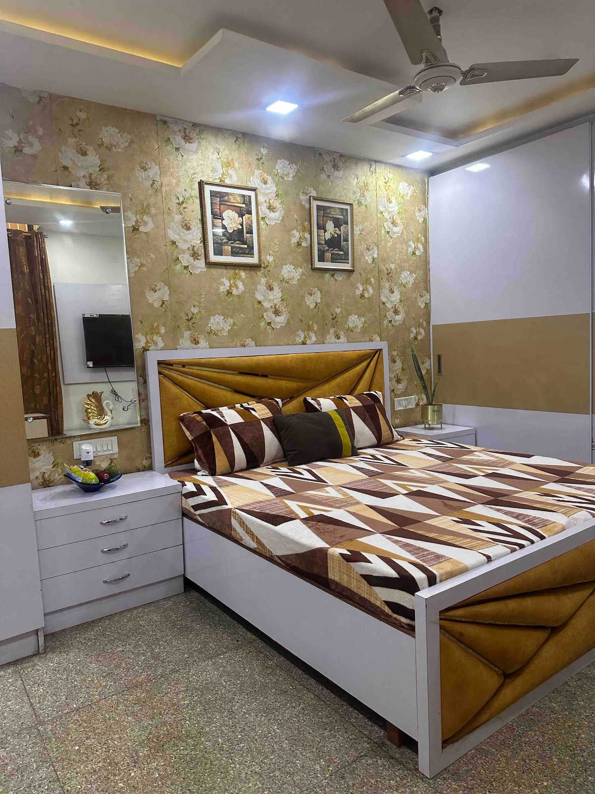 En «H is for Home» ofrecemos un espectacular apartamento privado de 3 dormitorios y 3 baños con una decoración elegante y servicios completos en el corazón de Delhi. Se encuentra en un edificio cerrado y seguro. Delicioso desayuno casero, té/café incluido. Ofrecemos servicio de coche + conductor para recogerte/dejarte en el aeropuerto, dentro de Delhi/NCR y para viajar a Agra/Jaipur. La unidad está situada en el tercer piso con acceso a través de un ascensor moderno. Todas las ventanas tienen rejillas y ofrecemos wifi Jio Fiber superrápido.