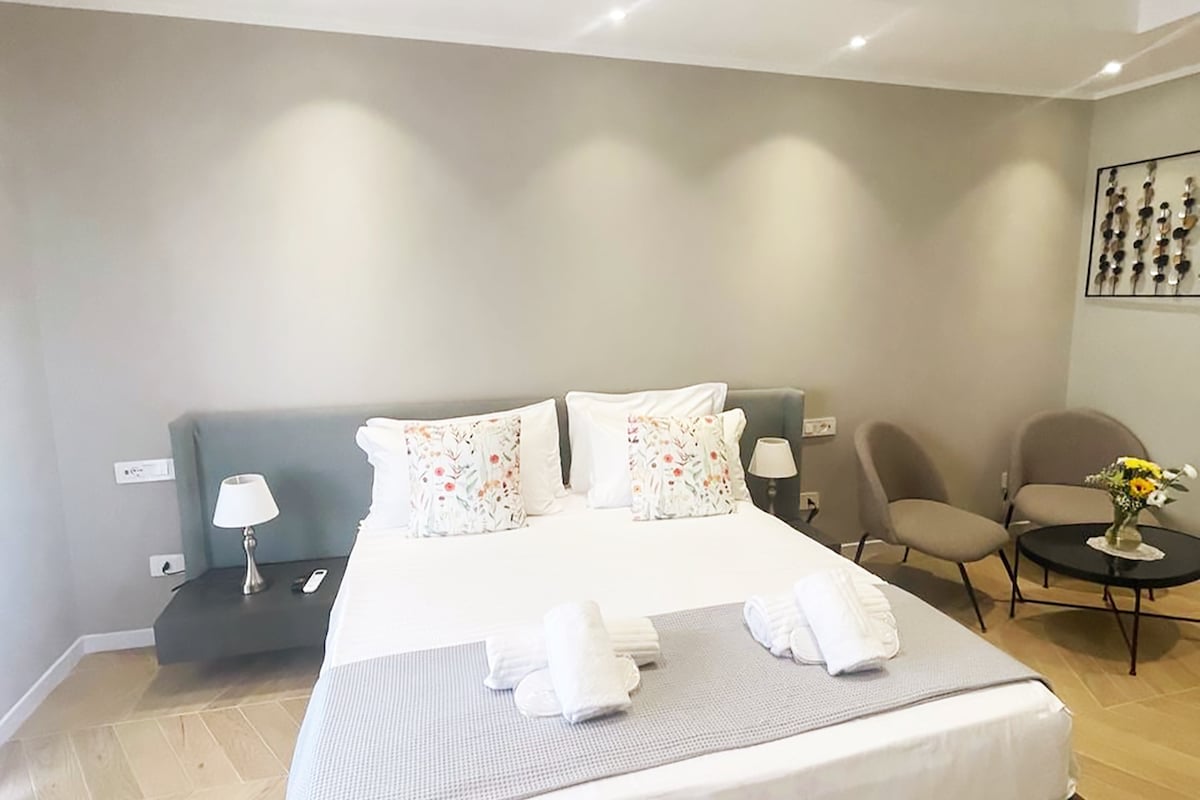 Esta luminosa y elegante suite vintage de Esquiline Suites tiene un baño privado de diseño súper chic y una cama tamaño queen Simmons Beautyrest de primera categoría. También tiene un balcón privado y una zona de estar, y viene con TV, Mini-Fridge, aire acondicionado/calefacción y wifi gratuito las 24 horas del día, los 7 días de la semana. Síguenos en #EsquilineSuites de Frank y Soledad