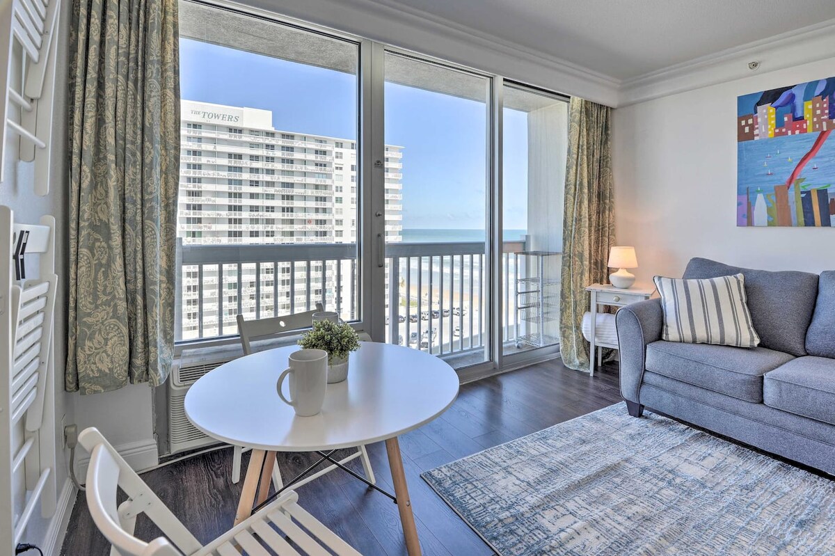 ¡Frente a la playa! ¡Estudio limpio con vista a la ciudad y equipo de playa!