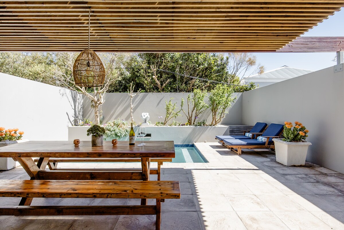 Relájate en las tumbonas junto a la piscina después de un ajetreado día explorando y disfrutando de las vistas de la montaña de la Mesa. Este espacioso estudio moderno da a tu propio patio de uso exclusivo con piscina privada de lujo. Da un paseo matutino por la playa, a solo 100 metros. Utiliza el área del escritorio de estudio en el interior o la gran mesa junto a la piscina en el patio protegido para trabajar de forma remota con nuestra fibra de alta velocidad. El estudio cuenta con iluminación de emergencia, aire acondicionado, Netflix y tu propia plaza de aparcamiento cerrada.