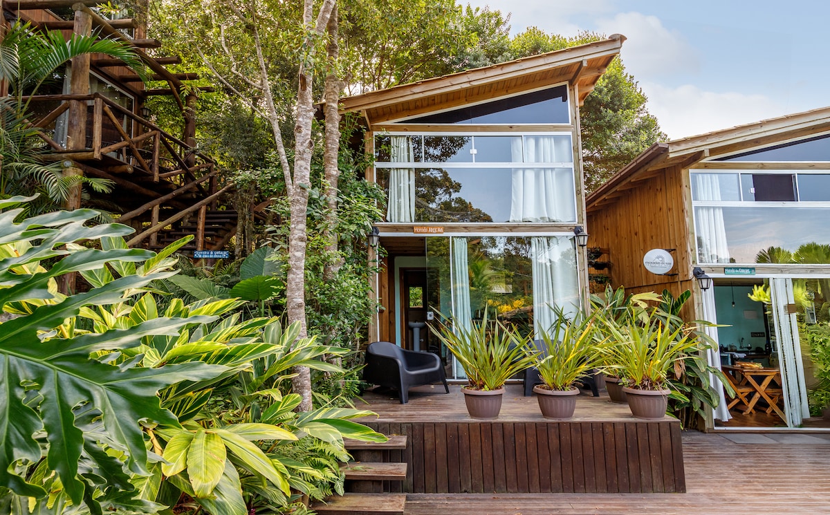 Disfrute del refugio EXCLUSIVO Y PRIVADO con jacuzzi caliente, en medio de un bosque con espectaculares VISTAS del atardecer en Lagoa Encantada. Las suites cuentan con aire acondicionado, TV y Wi-Fi de 600 MB Ofuro caliente y con hidromasaje. Quiosco Espacio Gourmet completo. Hay dos suites, una con una cama doble y la otra con dos camas dobles, no se alquilan por separado. Cerca de la playa y del centro. Acceso a la playa por sendero o escalera exclusiva, un hermoso ejercicio para el cuerpo y el alma.