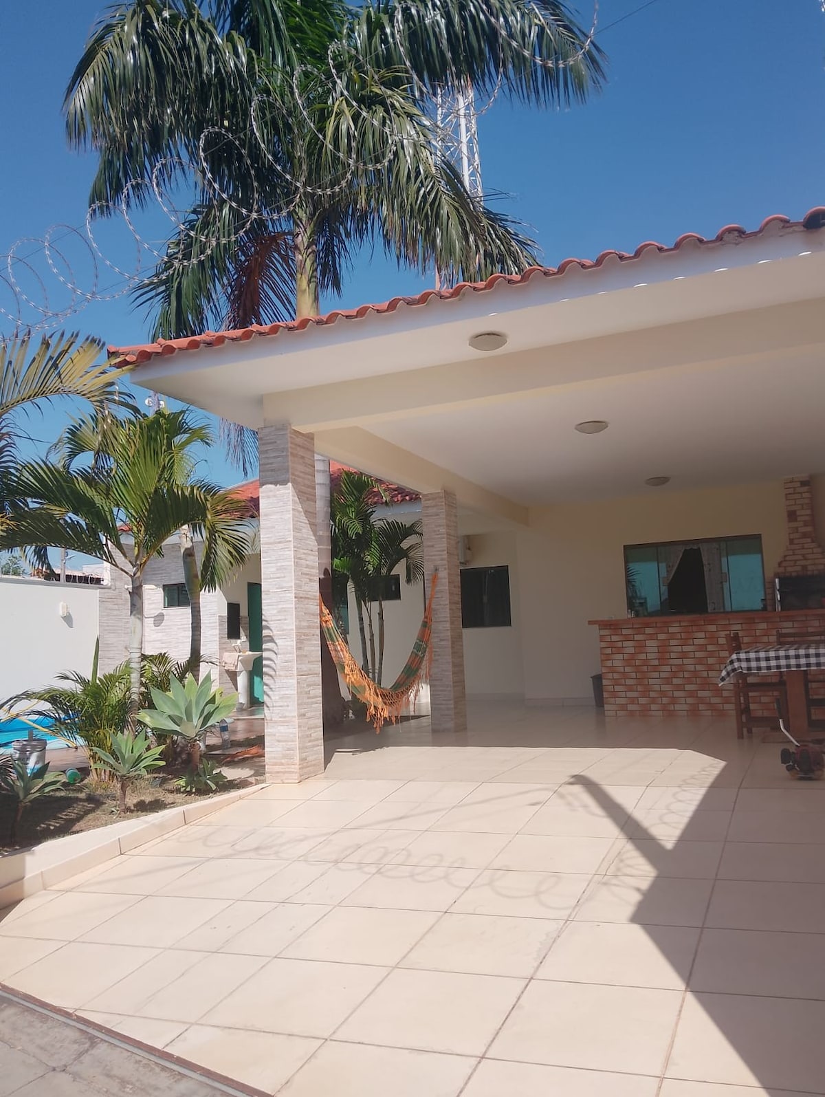 Hermosa casa con piscina y zona gourmet con todos los accesorios, aire acondicionado en todas las habitaciones y ducha con calefacción a gas. La casa tiene una hermosa piscina con cascada, terraza de madera y un gran sistema de sonido tanto para la zona de la piscina como para la zona gourmet.