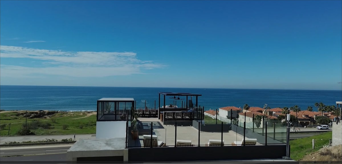 Residencia de lujo con 7 habitaciones, todas con baño privado, ideal para quienes buscan comodidad y privacidad. La mayoría de los dormitorios ofrece vistas al mar y acceso exclusivo a una casa completa de cuatro niveles. Incluye internet de alta velocidad, agua caliente ilimitada y estacionamiento privado para hasta 6 autos. Ubicada a 10 minutos en auto del centro de Rosarito y Papas & Beer, a 30 minutos al sur de Ensenada y a solo 5 minutos en auto de la playa.