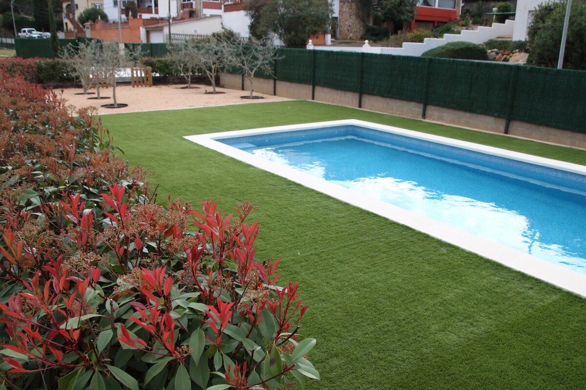 Casita adosada en una urbanización privada, sin duda la más bonita de esta parte de la Costa Brava. Acceso a pie (menos de 5 min) a la preciosa Cala Aigua Xelida, un rincón espectacular. Aroma a bosque y a mar, hermosos recorridos a pie junto al mar, mucha tranquilidad. A los más pequeños les encantará correr por las zonas ajardinadas y por las calles sin tráfico. Justo frente a la casa está la zona de césped, las piscinas y las pistas de tenis.