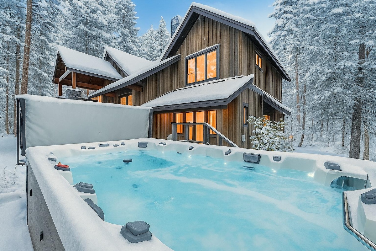 ¡Reserva ya tu escapada a la nieve! ¡Cabaña/spa con vistas al lago!