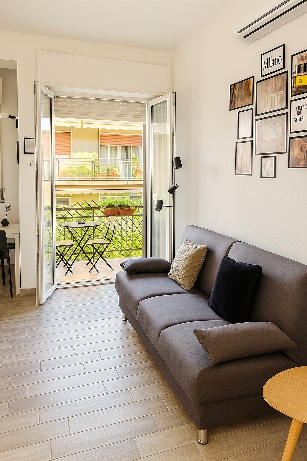 Recién renovado, a tiro de piedra del centro de Corsico, una ciudad que bordea Milán y atravesada por Naviglio Grande, cerca del transporte, autobús 325, 324, 327 a M4, M1, y la peatonal con tiendas y clubes, el apartamento consta de una entrada independiente, un balcón privado, una sala de estar con un sofá cama francés y aire acondicionado, una cocina abierta, un lavavajillas, una cafetera, un baño con una caja de ducha, una lavadora, un dormitorio doble, un wifi y un televisor inteligente, una plancha, mosquiteras