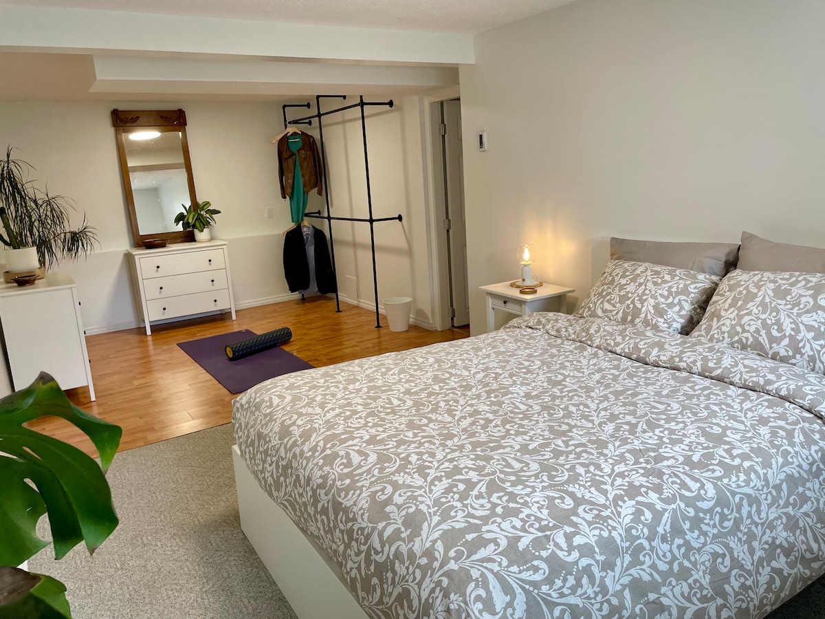 Nuestra espaciosa y tranquila suite de 1 dormitorio es perfecta para 3 huéspedes (1 cama tamaño queen y 1 cama doble). Si se alojan 4-5 huéspedes (sin incluir bebés), se colocará una cama plegable tamaño queen para los huéspedes adicionales en el área de la sala de estar. Nuestra casa está en Langford, a pocos minutos del centro de Victoria. A 2 minutos a pie del lago Florence y a 4 minutos en coche del centro comercial, puedes llegar fácilmente a todo lo que necesitas y acceder rápidamente a la autopista 1 para explorar la belleza de la isla de Vancouver.