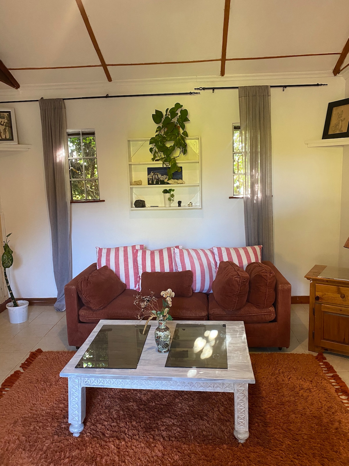 A Stand alone house in a shared compound. A great ambience and quiet area. This unique unit has a capacity of four guests. Has A LOUNGE A KITCHENETTE 2 BEDROOMS A KITCHENETTE 2 reading spaces. Ideal for the intrepid traveller in pursuit of work, adventure, or a family yearning for a getaway. A choice for corporate clients and groups seeking an inspiring offsite or meeting space. a boardroom available on request.